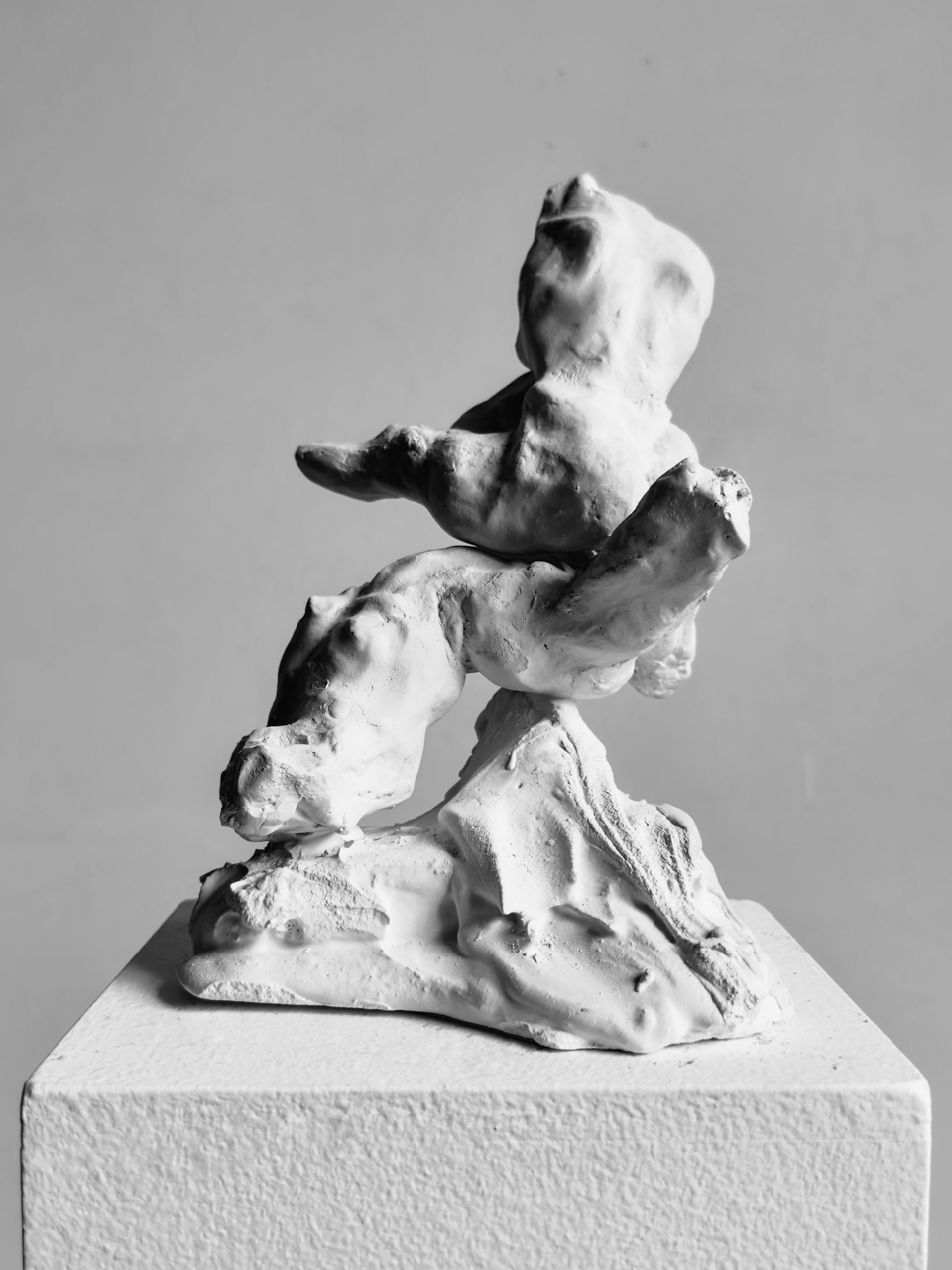 The embodiment of these moments could be de-scribed as the author's confession from his intimate life: "(delving these moments are daily rituals of many (of us - bathing, doing the laundry, drying, ironing, dressing or undressing. "A large part of these works contains physical details that were taken or stolen from our everyday envi-ronment (I'm lace, shoes, lingerie, socks, various cloth-diverse or nightgown)." All these attributes were cast in plaster and became the essence of the entire work. These small sculptures of domestic things are always made as unique pieces and can also be repli-cated in the future as bronze. This cast and mold would remove the very physical substance and pres-ence of the object, which is authentically sealed in the plaster in the form of fragments. The focus in this collection is sexuality.