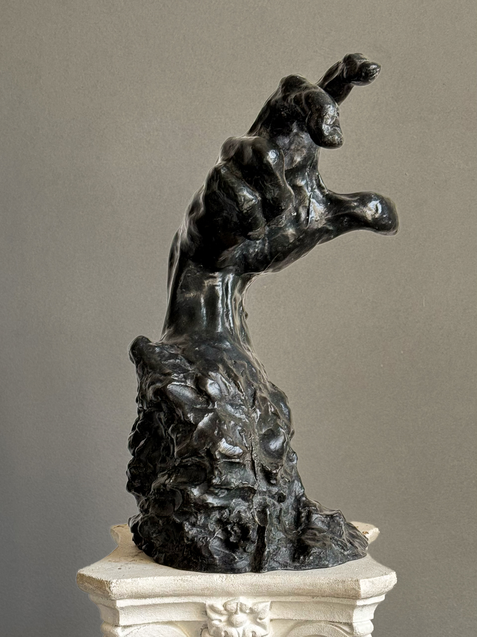 The objects capture a wide range of emotions through human hands, from tender touches and vulnerability to monumental gestures of strength and defiance. Thus, they become a records of humanity that transcends mere visual representation. "The essence of my work is working with the fig-ure and its subsequent fragmentation. Nature is very important to me because humans are an integral part of nature."
