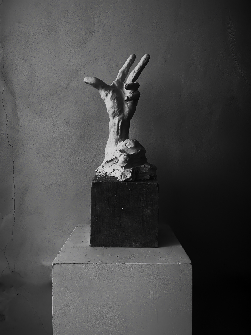Fragments and sketches of extensive works stand in this unfinished collection as independ-ent intimate studies. They are the testimonies of human touch intertwine. They are records of everyday life and deep meditation on human existence and suffering. The sculptures are an intimate artistic testi-mony to our ability to protect, create, suffer, and love. In Sebastian Wojnar's interpretation, hands appear as a bridge between physical re-ality and spiritual experience, as beings between the ordinary and the sacred.
