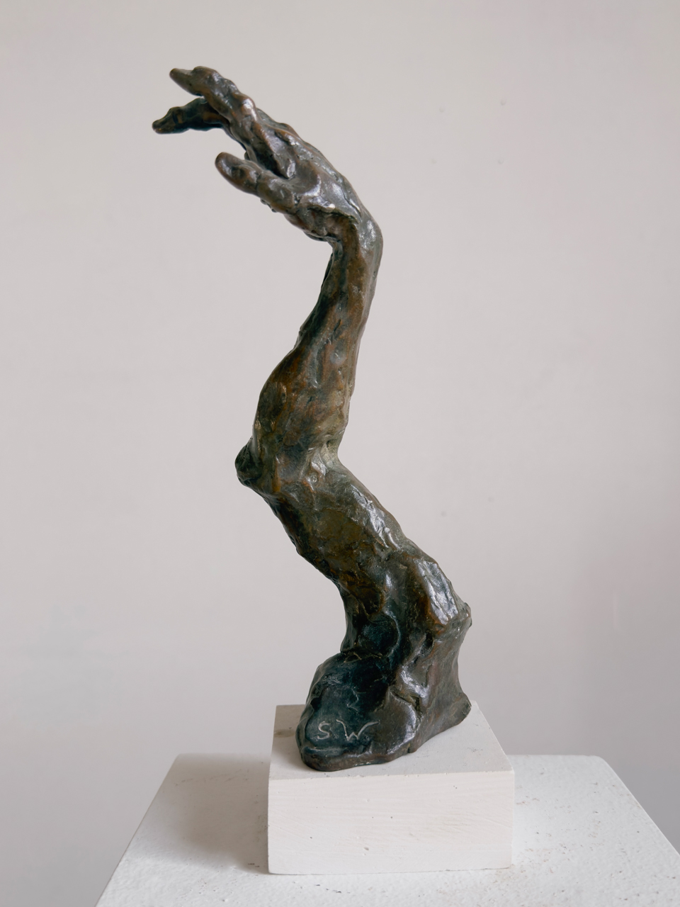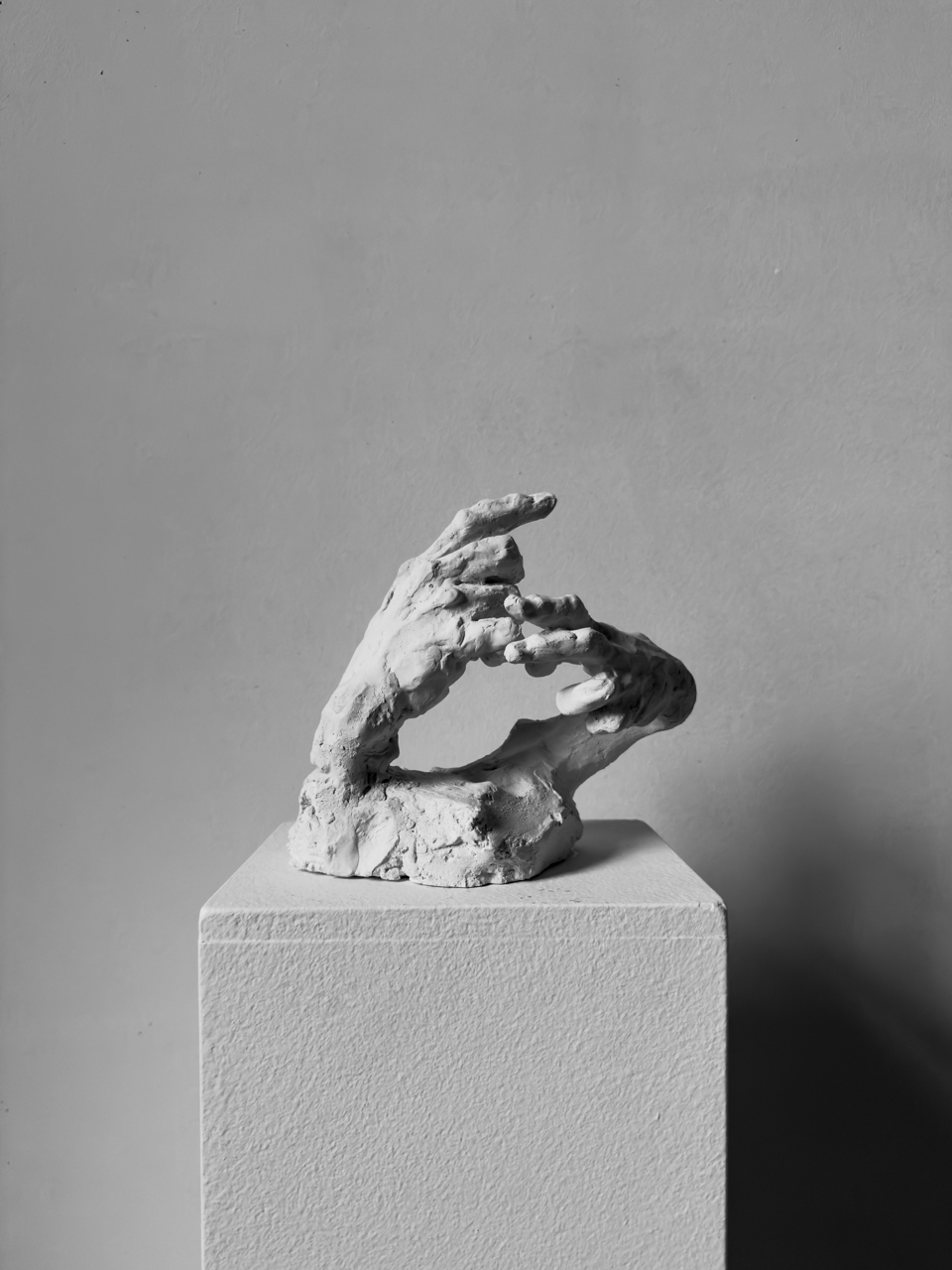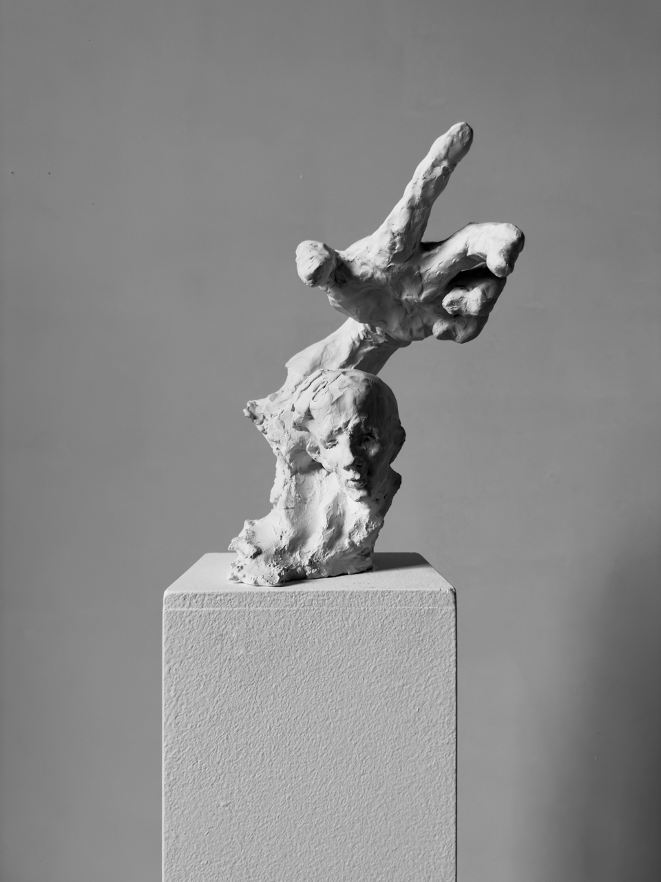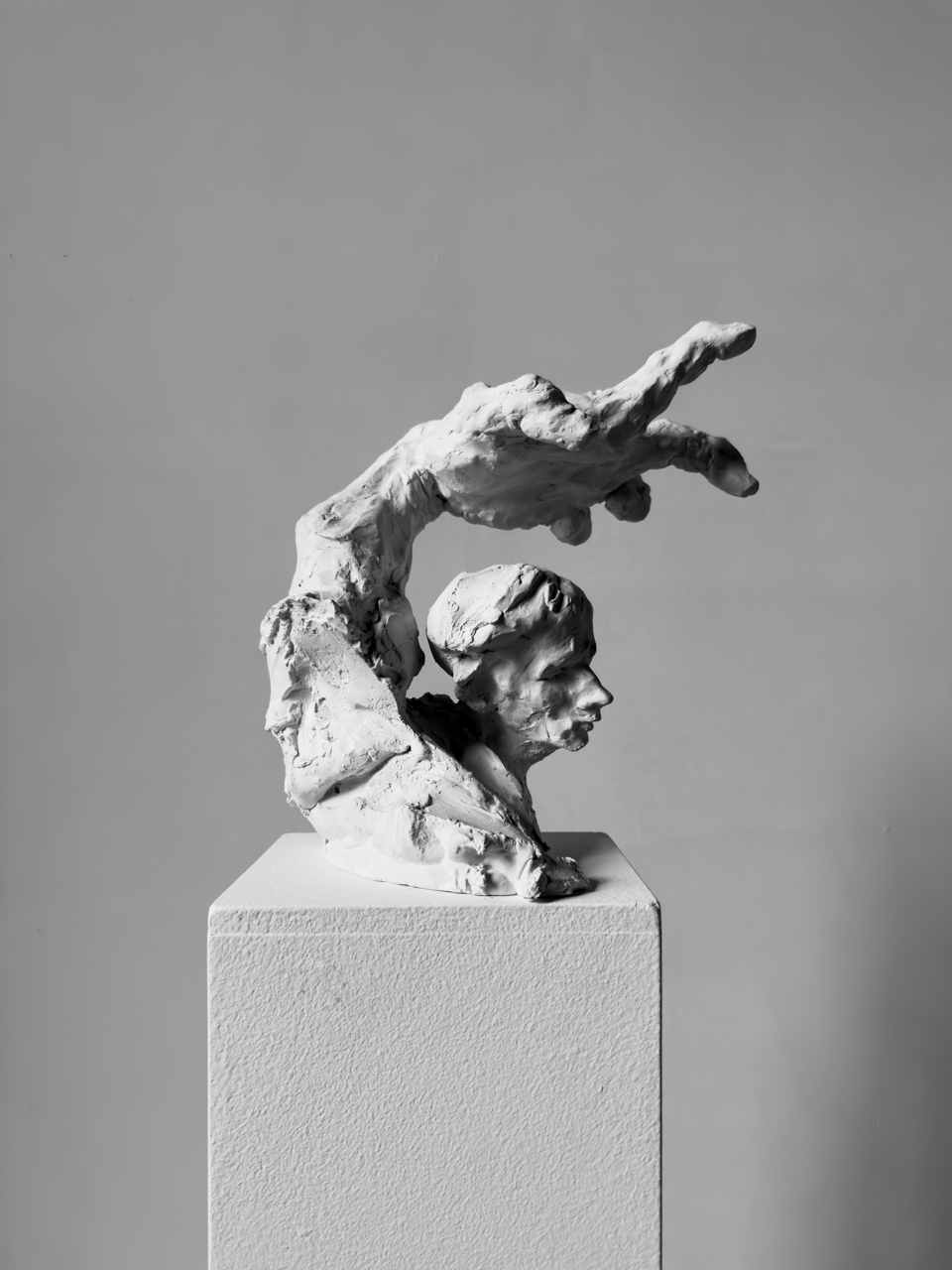 A powerful sculpture of hands inspired by an encounter with a boy suffering from cerebral palsy in a hospital waiting room. This work, created in both plaster and bronze, captures the essence of human struggle and determination. The piece serves as a reminder of the importance of resilience and the strength found in those facing the greatest challenges. It embodies the fight against adversity and the refusal to give up.